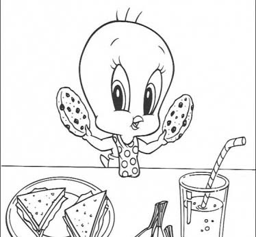 Disney Coloring Pages : Tweety Bird Having Dinner